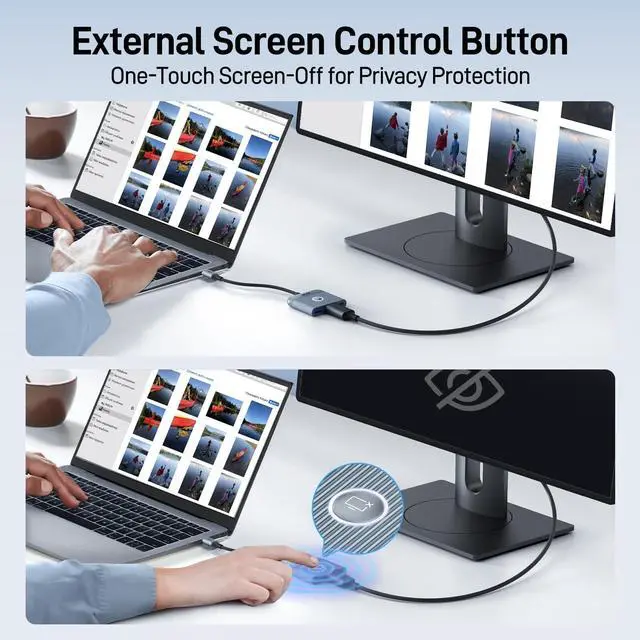 Screen Control: This USB C to HDMI multiport adapter features an innovative one-touch button, that allows you to instantly sleep or wake up your HDMI-connected display. Perfect for quick privacy, power saving, and seamless transitions during meetings or entertainment sessions.