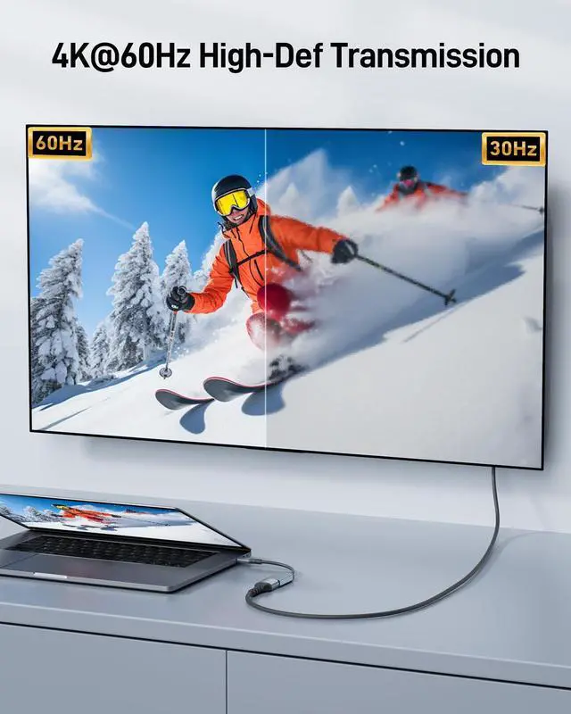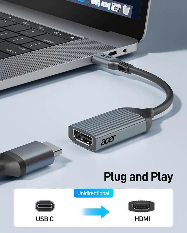 [ULTRA HD 4K@60Hz] Acer USB C to HDMI adapter supports resolutions up to 4K@60Hz and is backward compatible with 2K@144 Hz/60 Hz, which can away from visual fatigue caused by a low refresh rate.