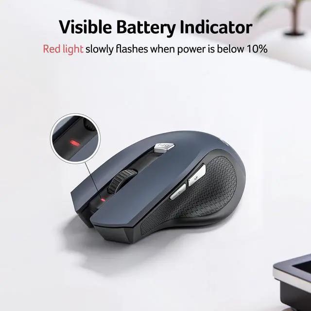 • Plug and Play: The computer mouse wireless features 2.4GHz connectivity, offering a stable, interference-free connection within 32ft. Simply plug in the USB-A receiver for instant use no drivers needed.