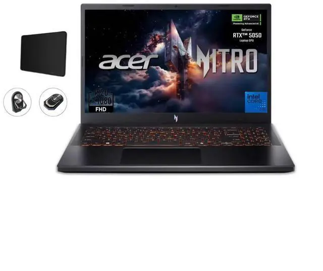 Acer Nitro V 15, this laptop is the perfect blend of power and style, pushing the boundaries of whats possible on a laptop. Powered by an Intel Core i5-13420H processor and NVIDIA GeForce RTX 5050 laptop graphics and showcasing a crystal-clear 15.6 Full HD display with a 165Hz IPS panel - you can see why the Nitro V 15 is a knockout hit for gamers of every level.