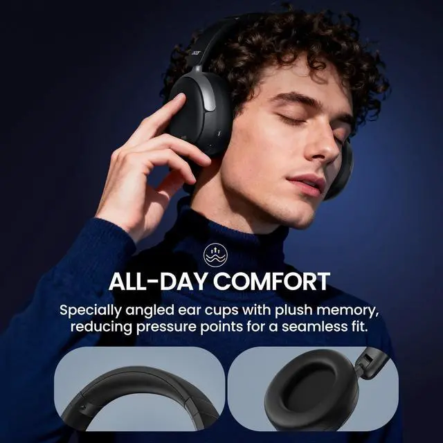 Comfortable & Pressure-Free ANC: Features advanced Active Noise Cancellation that effectively reduces ambient noise for peace and focus. Specially tuned to minimize ear pressure, offering a comfortable and immersive listening experience for long wear. ^^ Immersive Sound with