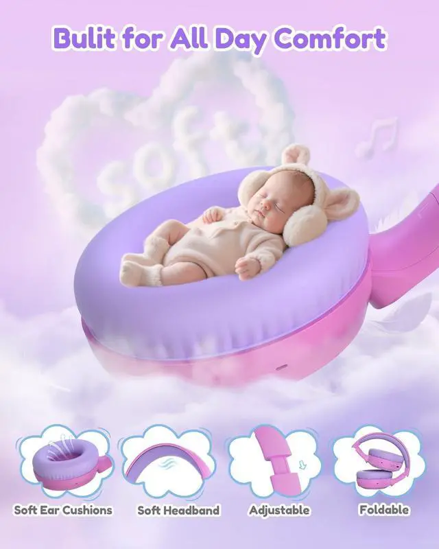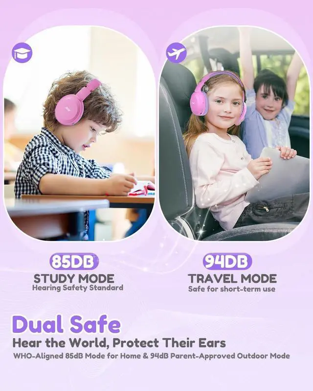 Safe & Healthy Listening: Our bluetooth headphones meet strict US market regulations and have built-in volume limiting technology (85/94dB) to protect children's sensitive hearing. Plus, they're CPSIA certified and BPA-free for total worry-free use ^^