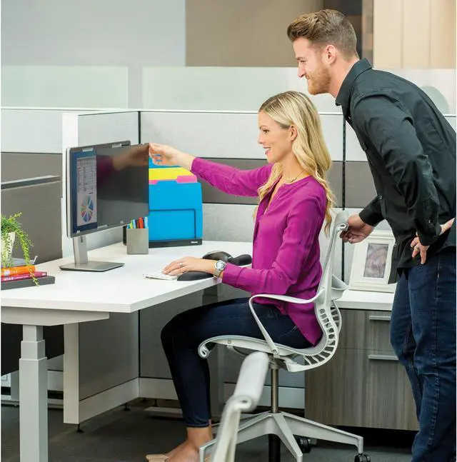 Fellowes new PrivaScreen Filters with PrivaScreen Technology provide blackout privacy for your screen image. On-screen data is only visible from a straight-on view. Prevent prying eyes from reading your screen when viewed from a 30 side angle. Fellowes PrivaScreen Filters protect your screen from fingerprints, scratches and reduce glare to help prevent eye strain. Easy to attach and remove with new and improved tabs. Product is 100% recyclable. 1-Year Limited Warranty.