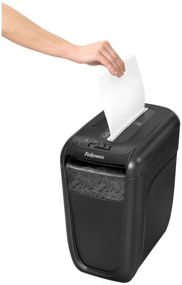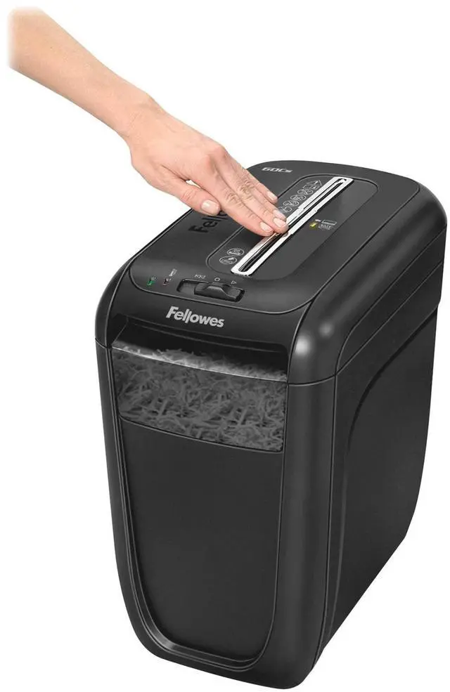 Stay safe with the Fellowes (R) Powershred 60Cs featuring SafeSense (R) Technology stops shredding when hands touch the paper opening. Capable of shredding 10 sheets per pass into 5/32"x 2" cross-cut particles and shredding up to 6 minutes before a 30 minute cool down period is needed.