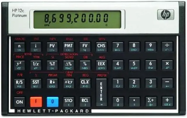 The 12C Platinum is a powerful tool capable of handling the most complex and detailed analysis and problem solving. With over 130 built-in functions for business, finance, mathematics and statistics including date calculations, this calculator offers fast and reliable programming, finance, and statistical analysis options. With the 12C, you'll enjoy the flexibility of both RPN (Reverse Polish Notation) and algebraic modes of entry, the speed of its processor, and the increased memory capacity.
