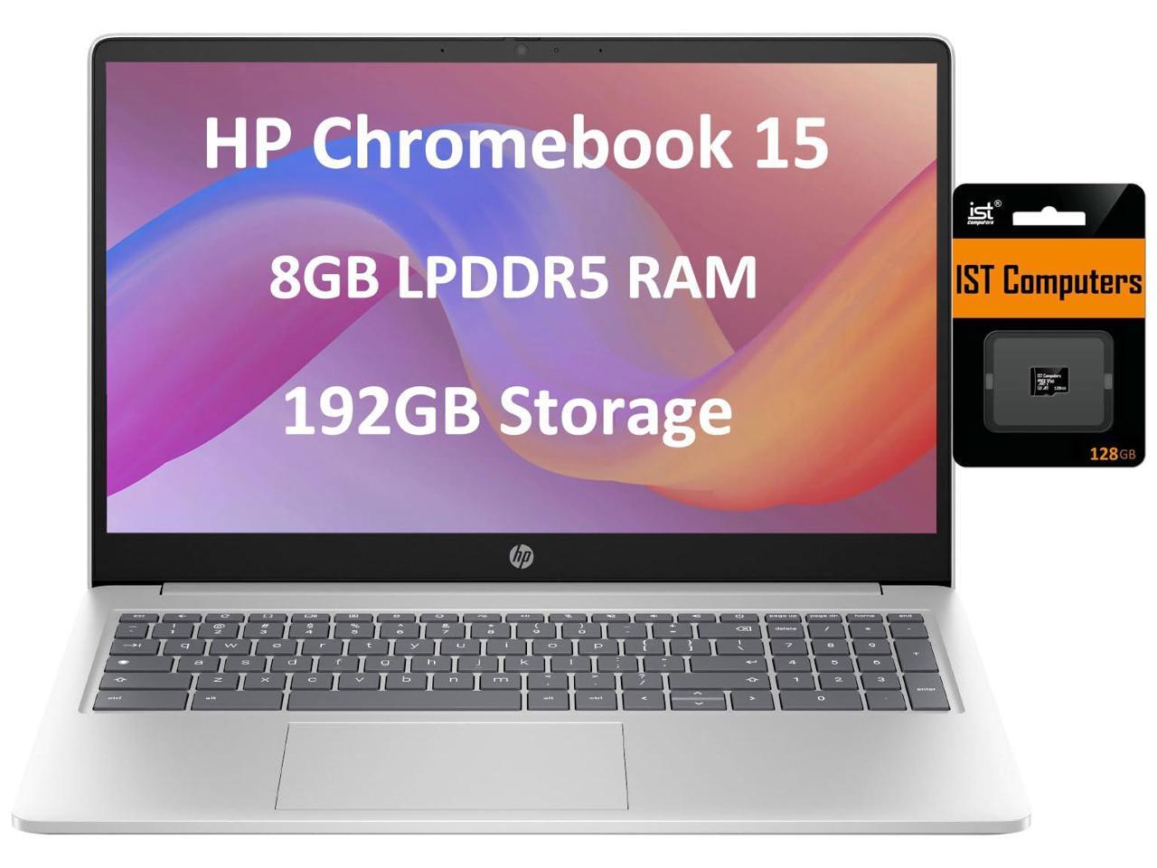 HP Chromebook 15 Laptop for Student and Business (15.6" Narrow bezel, Intel N200 (>Pentium N6000), 8GB RAM, 192GB Storage(64GB + 128GB SD Card), Webcam, Numeric Keyboard), IST Card, Chrome OS, Silver
