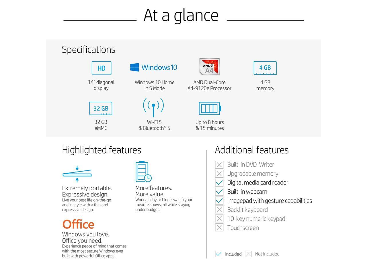 - Processor: AMD Dual-Core a4-9120e Processor, 1.5 GHz up to 2.2 GHz