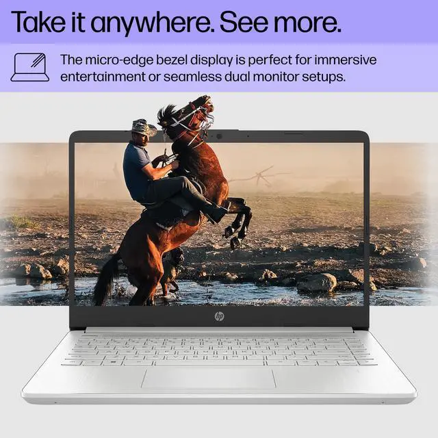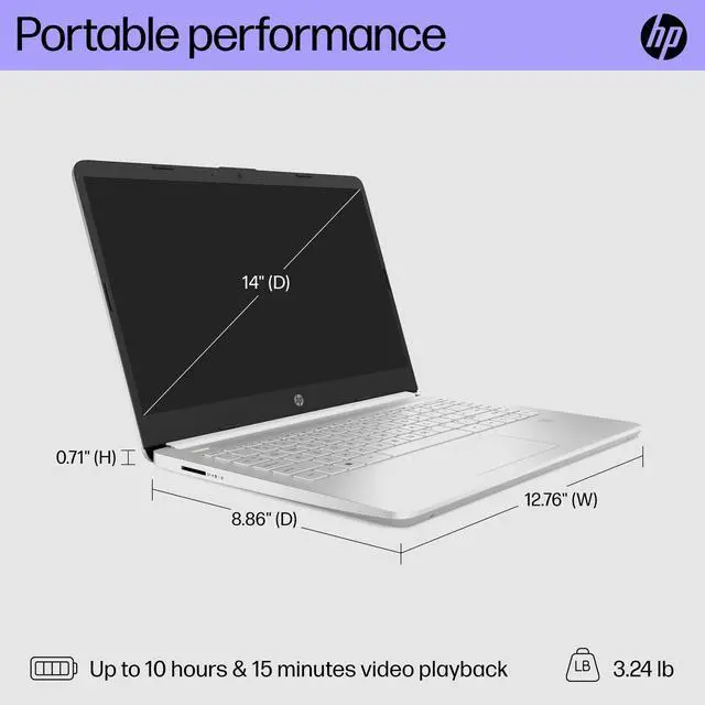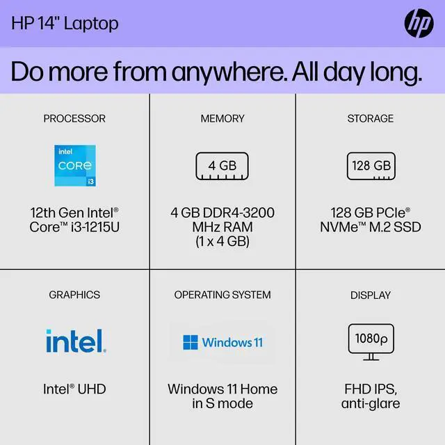 Designed to keep you productive and entertained from anywhere, the HP 14 inch Laptop PC combines long battery life with a thin and portable, micro-edge bezel design. Tackle your busiest days with the performance of an Intel Core processor. Save more of what you love with abundant storage for all your photos, videos and documents and see them all on a maximized 14-inch flicker-free display. Long battery life and HP Fast Charge technology let you work, watch, and stay connected all day. Integrated precision touchpad with multi-touch support speeds up both navigation and productivity, and the fingerprint reader gives you a seamless, secure login.