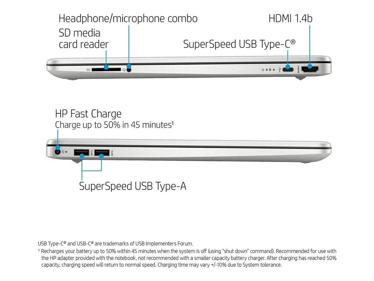 HP [Windows 11 Home] Newest Laptop, 15.6" Full HD Display, AMD Athlon Silver 3050U Processor, 12GB RAM, 128GB SSD, Media Card Reader, USB Type-C, HDMI, Webcam, Wi-Fi, Bluetooth, Silver