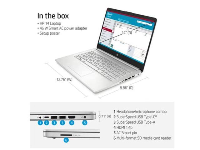 - [Display] 14" diagonal, HD (1366 x 768), micro-edge, BrightView, 250 nits, 45% NTSC