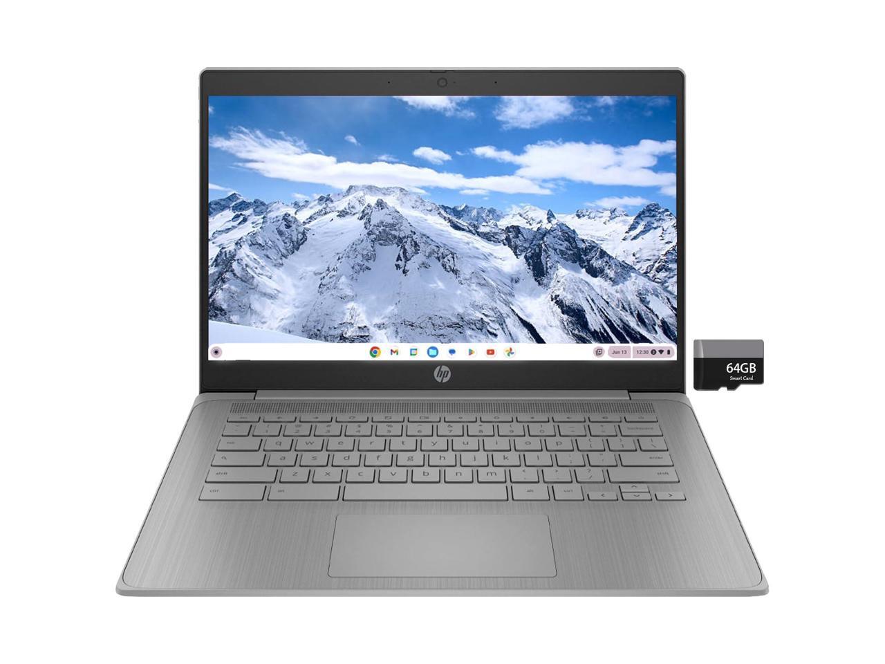 HP Chromebook 14" HD Laptop PC for College Students and Business, Chrome OS, Intel Celeron N4120 Processor, 4GB RAM, 64GB Storage, Bluetooth, Wi-Fi, Modern Gray, Alpacatec 32GB Card