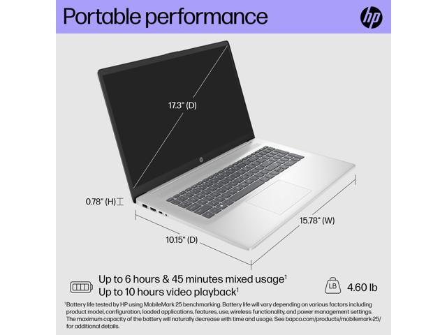 HP 17.3" IPS Anti-Glare FHD (1920 x 1080), Laptop - Intel Core 5 Processor 120U (10-Core) 5.0GHz Max Turbo - Windows 11, Wi-Fi 6 (2 x 2), Backlit Keyboard, 512GB M.2 SSD, 16GB RAM