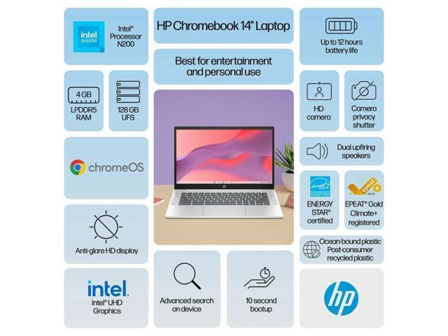 - HP Chromebook 14" Laptop with micro-edge anti-glare HD display