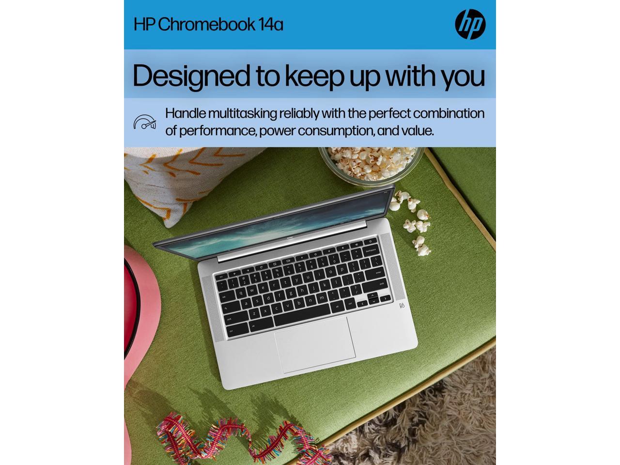 HP Chromebook 14 Laptop, Intel Celeron N4120, 4 GB RAM, 64 GB eMMC, 14" HD Display, Chrome OS, Thin Design, 4K Graphics, Long Battery Life, Ash Gray Keyboard (14a-na0226nr, 2022, Mineral Silver)