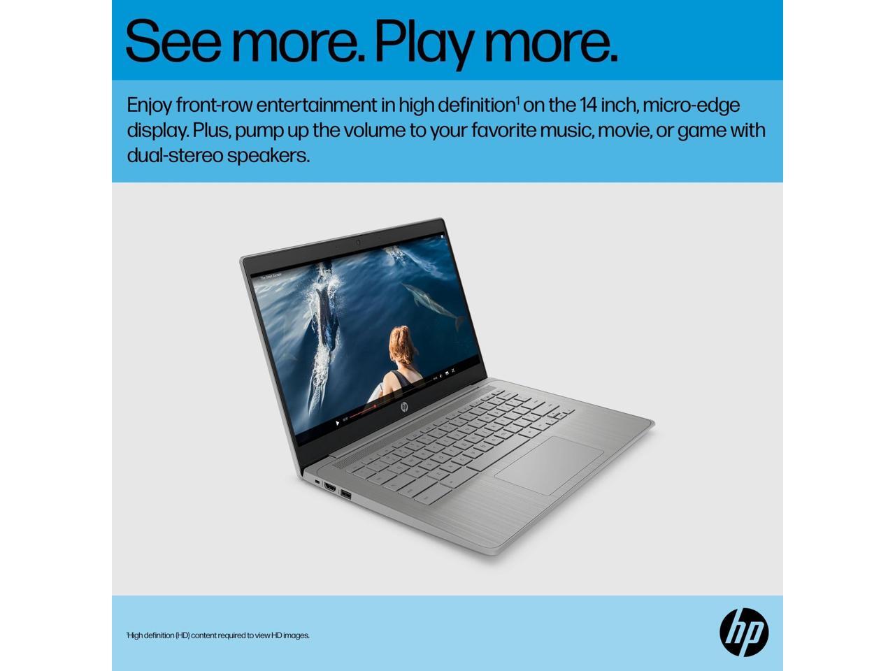 EXCELLENT VISUAL- Features a 14-inch HD (1366 x 768) display with Micro-edge technology. Expand your workspace by connecting to 2 external monitors via HDMI and USB-C, supporting resolutions up to 4K (3840x2160) @30Hz. HP True Vision 720p HD camera ensures crisp video calls with enhanced clarity.