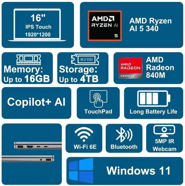 Microprocessor: AMD Hexa-core Ryzen AI 5 340Memory: 16GB