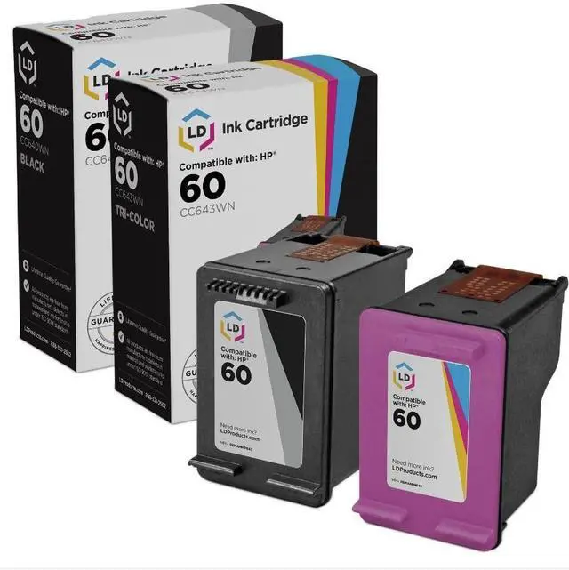 Compatible Replacements Included: 2 (1 Black and 1 Color) ^^ Deliver pages just like the original HP 60 compatible ink cartridge ^^ Average cartridge Page Yield* in accordance with ISO IEC 24711. *at 5% coverage (ISO/IEC standard) ^^ This is the standard yield version of HP compatible ink cartridge HP 60.