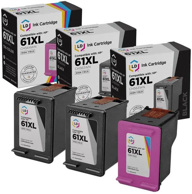 Product name: HP 61XL 61 XL 61-XL Black and Tri-Color compatible ink catridge replacements for HP ink 61 61XL (CH563WN CH564WN) ^^ Professional compatible replacements manufactured by LD Products. HP is a registered trademark of HP and is not affiliated with and does not endorse LD Products.