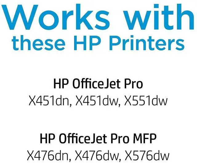HP 971XL Yellow Ink Cartridge (CN628AM) for HP Officejet Pro X451 X476 X551 X576. HP 971 ink cartridges work with: HP Officejet Pro X451, X476, X551, X576. Cartridge yield (approx. ): 6, 600 pages. Get up to 2x the pages with Original HP XL ink cartridges compared to standard cartridges.