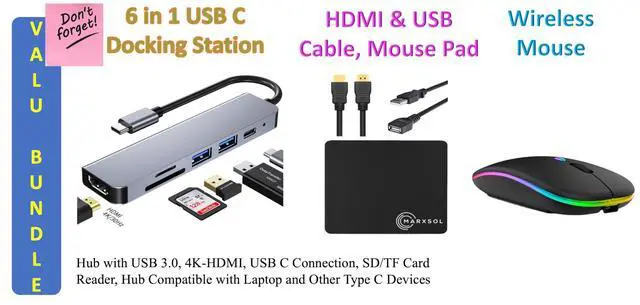 MarxsolCableAccessories: (500GB External Driver +6-in-1 USB-C Docking Station Hub, HDMI cable, USB extension cable, mousepad, and wireless mouse