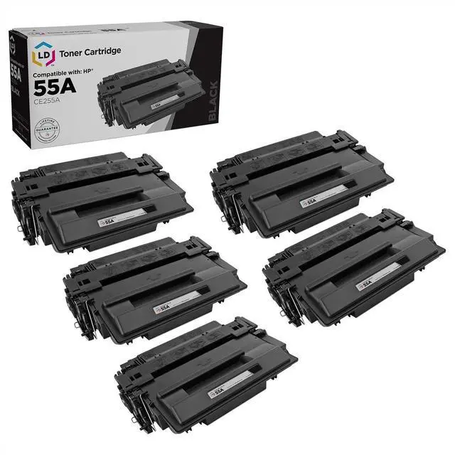 Package Includes: 5 pack of HP CE255A / HP toner 55a Black ^^ Compatible *Per Cartridge at 5% coverage (ISO/IEC standard) ^^ All LD branded remanufactured HP Laserjet P2055DN compatible toner cartridge products are specially engineered to meet the highest standards of quality and reliability ^^ Please contact us first with any product issues. We want all of our customers to be happy because happiness matters.