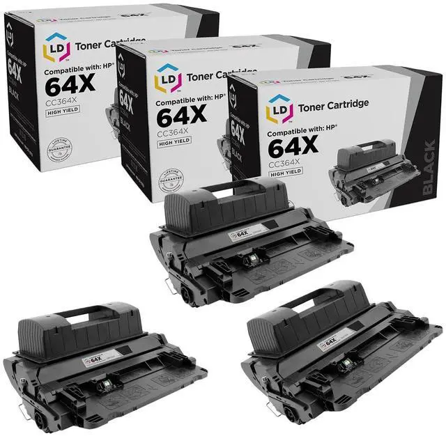 Compatible Replacements Included: 3 CC364X / HP 64X Toner Cartridge Black / High Yield ^^ Delivers 24, 000 pages just like the original P4014 compatible toner cartridge ^^ Average cartridge Page Yield* in accordance with ISO IEC 24711. *at 5% coverage (ISO/IEC standard) ^^ This is the high yield version of HP 64A / HP 64A compatible toner cartridge / standard yield ^^ Please contact us first with any product issues. We want all of our customers to be happy because happiness matters.