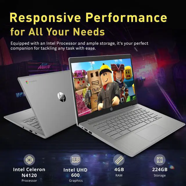 14" HD Anti-glare DisplayThe business and leisure activities will undoubtedly benefit from the mesmerizing clarity and brilliance. ^^ Intel Celeron N4120 ProcessorImmerse yourself in a world of power and efficiency, where an ultra-low-voltage platform optimizes energy usage. ^^ 4GB LPDDR4 RAMPlenty of high bandwidth to run multiple programs simultaneously without any slowdowns. 224GB Storage(64GB eMMC+160GB Docking Station Set)Massive storage space for your files, applications, and multimedia content, providing fast and reliable data access. ^^ Intel UHD Graphics 600Enjoy solid image quality that brings your everyday content to life with vibrant colors and sharp details.