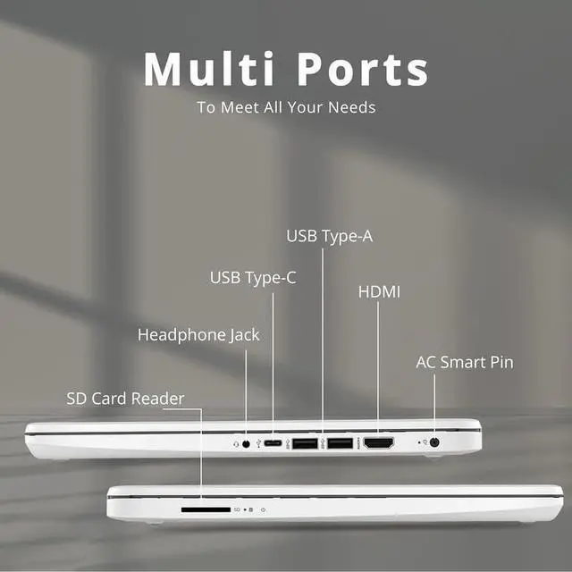 • 14.0" HD LED Display14.0-inch diagonal, HD (1366 x 768) BrightView display with micro-edge design offers vivid visuals at 220 nits brightness and 45% NTSC color coverage. Versatile for home, student, professional, small business, school, and commercial use. Perfect for online classes, Google Classroom, remote learning, and Zoom meetings