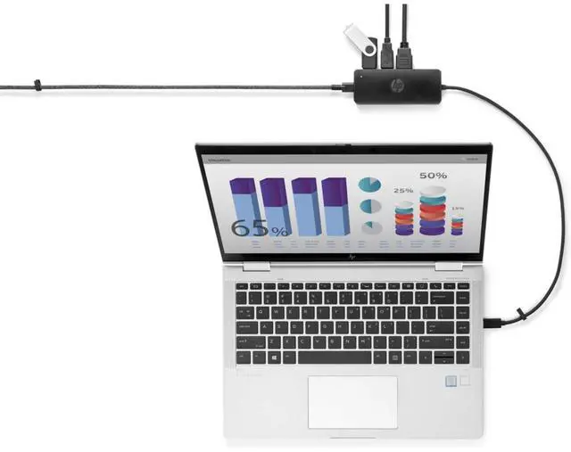 Easily expand your laptops connectivity when working on the go with HP USB-C Travel Hub G2. [1] Add an extra display[2] and your accessories, charge your laptop and phoneall with one USB-C cable connection.