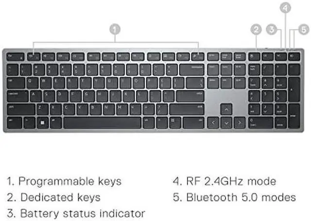 Powered by one of the industry's leading battery lives at up to 36 monthsi, the Dell Premier Multi-Device Wireless Keyboard and Mouse combo has been rigorously tested to work seamlessly with your Dell system. The keyboard offers 128-bit AES (Advanced Encryption Standard) encryption protecting your data transmission across your PCs and devices, providing you with a secure connection while typing.