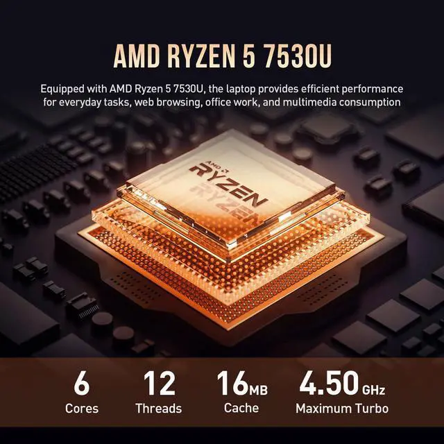 AMD Ryzen 5 7530U (6 cores, 12 threads, Up to Turbo Boost 4.5GH z)