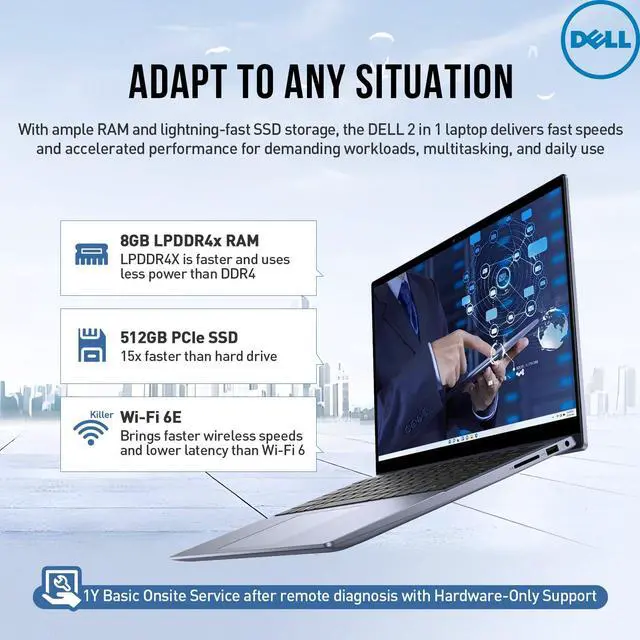 This Dell 2 in 1 Touchscreen Convertible laptop is your ideal companion for tackling daily tasks, be it in the boardroom or the lecture hall. Its powerful performance, ample memory, and stunning display make this light weight Dell flip laptop 2 in 1 a versatile choice for business professionals and college students alike.