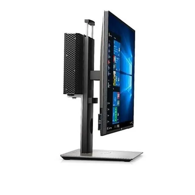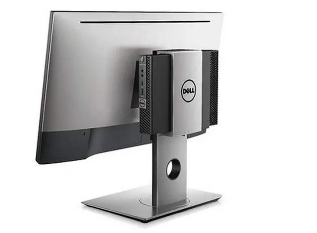 Dell Micro Form Factor All-in-One Stand - MFS18 provides space saving, clutter-free aesthetics with ultimate display configurability and flexibility. Maximize your desk space with the Dell Micro Form Factor All-in-One Stand which houses the OptiPlex MFF desktop and monitor in a small footprint. The stand is fully adjustable, allowing you to customize your monitor to your viewing comfort. It supports 19' to 27' Dell Ultra Sharp and P models with Dell Quick Release and E model VESA compliant monitors. Neatly manage cables by routing them through the cable slots on the stand. The meshed cable cover hides cables from view, keeping your desk space clean and tidy.