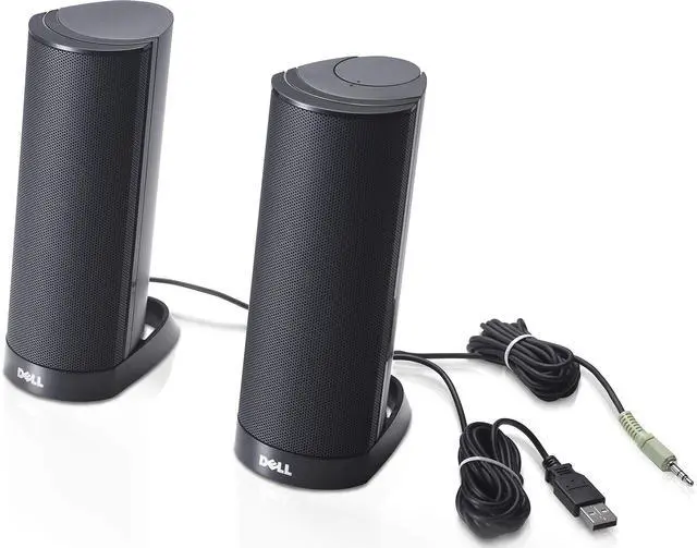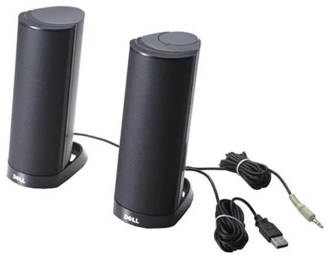 Experience simple, quality audio with Dell AX210 Stereo Speakers. This affordable speaker system is easy to use and easy to set up right out of the box. It comes with an integrated amplifier and has a total output of 1.2 Watts, making it ideal for desktop listening.