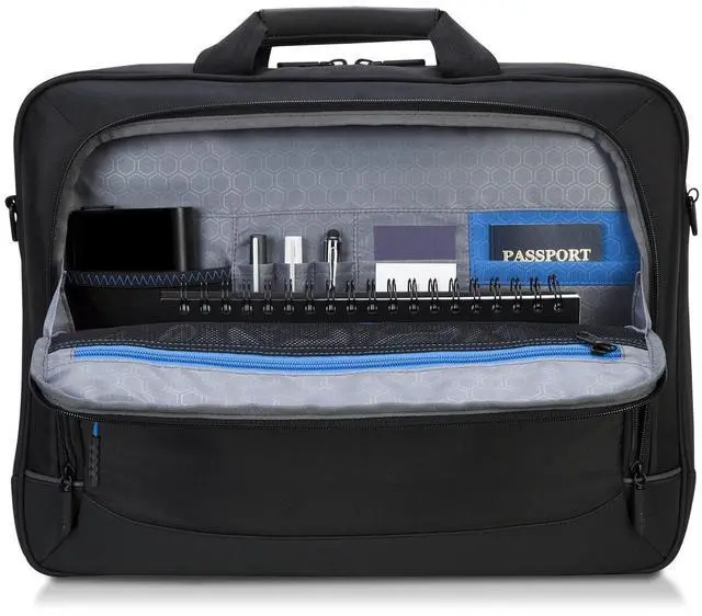 Classic, multi-compartment 14" briefcase keeps your laptop, tablet and accessories protected and organized.