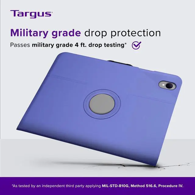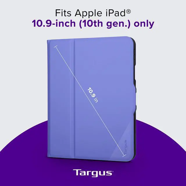 The Targus Click-In Case for apple ipad 10th generation case 10.9 -inch provides strong, military-grade drop protection (up to 4 feet/ 1.2 meters)* in an ultra-slim design. Engineered for durability without adding weight, this Apple iPad case features a flexible tray with wrap-around bezel and reinforced corners, structured front and back covers, and a soft lining inside that safeguards your device screen from scratches. The front cover flips back into a hands-free stand for your iPad 10th gen case, making it easy to adjust your device into infinite viewing angles or a comfortable typing position.