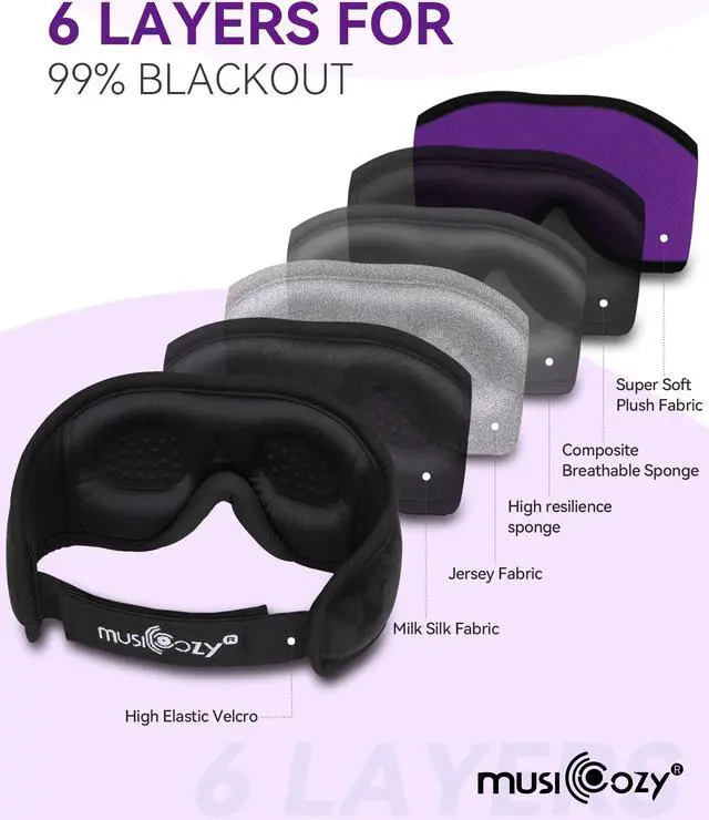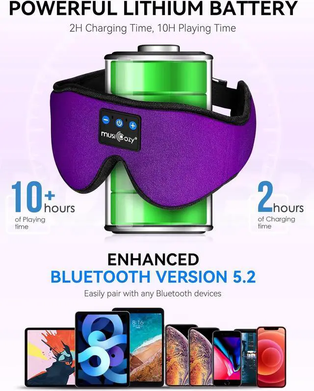 [( Bluetooth Sleep Headphones with HD Stereo Sound)] MUSICOZY 3D Sleep Headphones use Bluetooth technology to bring high-fidelity stereo with excellent sound quality. The extraordinary clarity provides you with a feast of excellent and comfortable sound. They can block ambient noise without the use of painful and falling sleep earplugs. You can listen to soft music without wearing additional headphones, so that you fall asleep faster without the risk of enlacing with the neck.