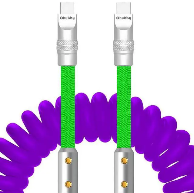 ChubbyCable Colorblock Chubby - Spring Braided Silicone Charge Cable, Coiled USB C Cable, Fast Charging Type C Charger Cord for Car, Purple+Light Green, 2.29FT - 3.6FT