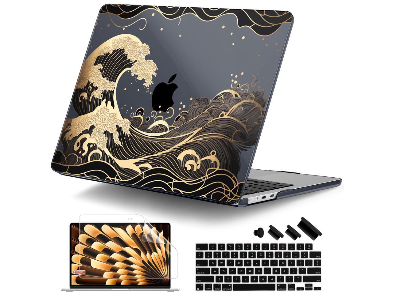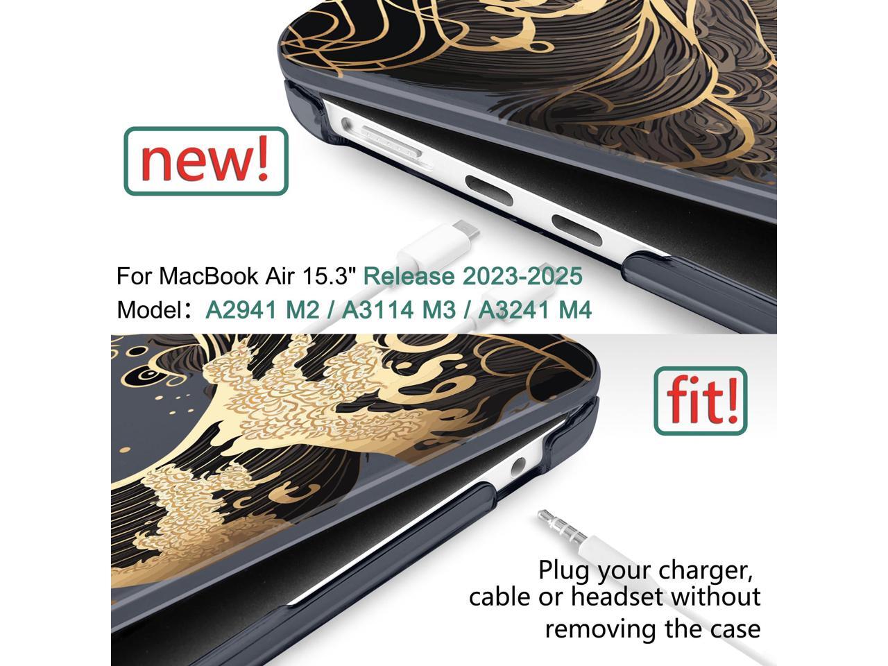 DONGKE Compatible with M4 MacBook Air 15 inch Case 2025 2024 2023 A3241 A3114 A2941 M3 M2 Liquid Retina Display Touch ID, Plastic Hard Case & Keyboard Skin & Screen Protector - Sea Waves