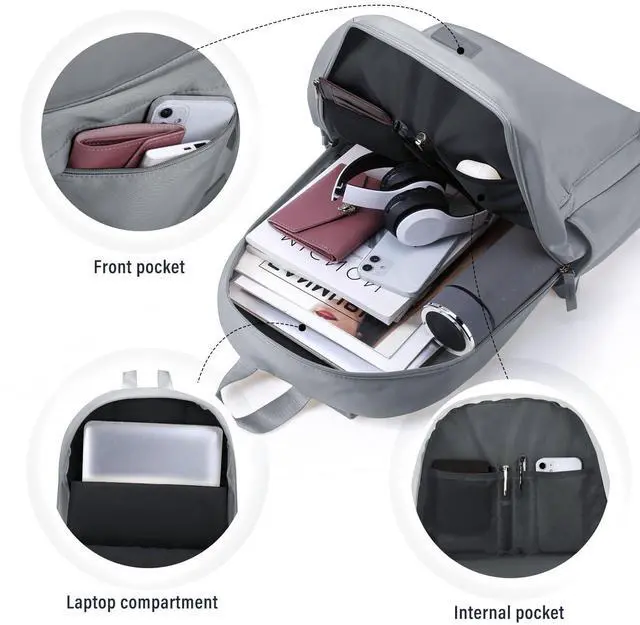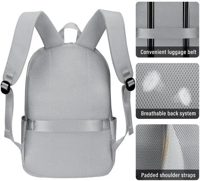 HOMIEE Lightweight Casual Laptop Backpack Fits 15.6 Inch Computer, Water-Resistant Small Daypack Unisex Bookbag for College Work Travel, Grey