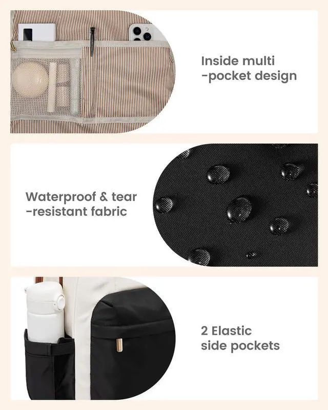 STURDY & WATER-RESISTANT Our laptop backpack women is made of high-density polyester, scratch-proof, tear-resistant, and water-resistant. Double carry handles are reinforced seam, absolutely strong and durable, while metal double-way SAB zippers allow for easy opening/closing.