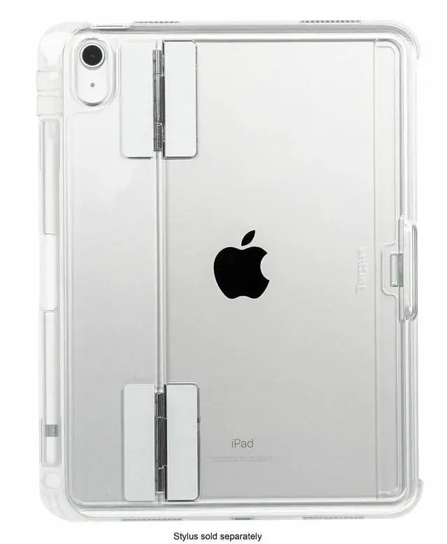 Let your iPad stand out with the Targus Click-In Clear Case + Kickstand for your 10.9 -inch iPad (10th gen. ). Complement your colorful new iPad with this clear case thats engineered for durability without extra weight. Featuring a shock-absorbent tray with wrap-around bezel and reinforced corners, it delivers military-grade drop protection (up to 4 feet/ 1.2 meters) in a slim design. Its built-in kickstand flips out to offer hands-free viewing in multiple angles while in landscape mode, making it easy to watch the screen at nearly any angle. Plus, enjoy added efficiency with an integrated holder for your Apple Pencil or stylus (Pencil sold separately by Apple).