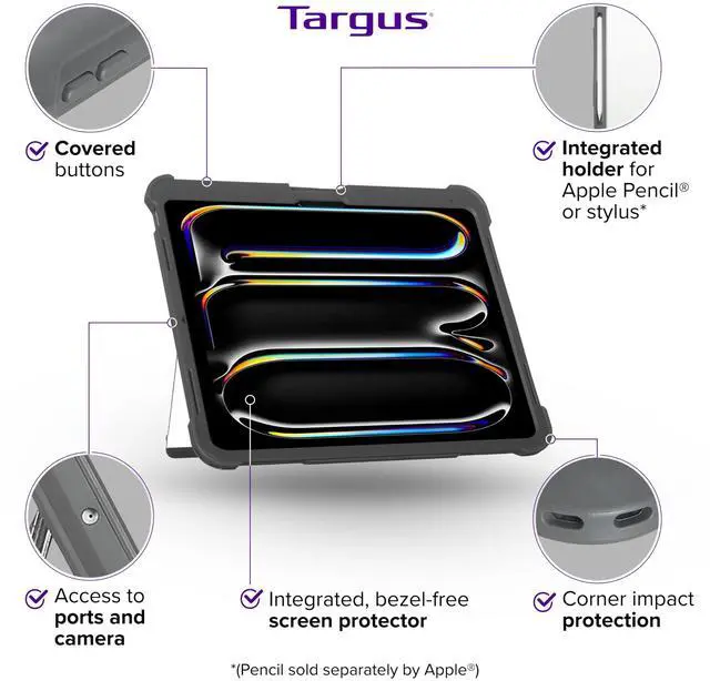 Targus SafePort Rugged Max Case for iPad Pro 13-inch (M4) MIL-STD Drop Tested, Screen Protector, Kickstand, Hand Strap, Stylus Holder, Dust & Fluid Resistant - THD969GL