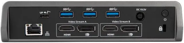 This dock combines performance plus power, with the ability to plug in two 4K monitors and power your laptop while saving space on your desk. Get the most of your workstation with two ultra-high-def monitors. Plug them in with the USB-C Universal DV4K Docking Station with Power, which is Thunderbolt 3 compatible and supports both DisplayPort and HDMI. Itll help keep your laptop, and your productivity, humming all day long as it delivers integrated power and charging for most USB-C laptops up to 60W. With four USB 3.0 ports (including one thats high-powered for charging devices), plus an Audio In/Out port for speakers, mics, or earphones, its easy to customize your workstation.