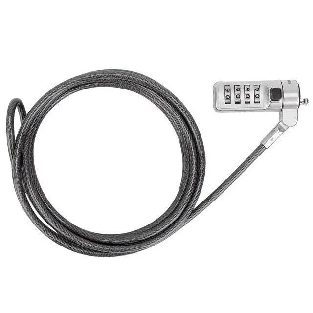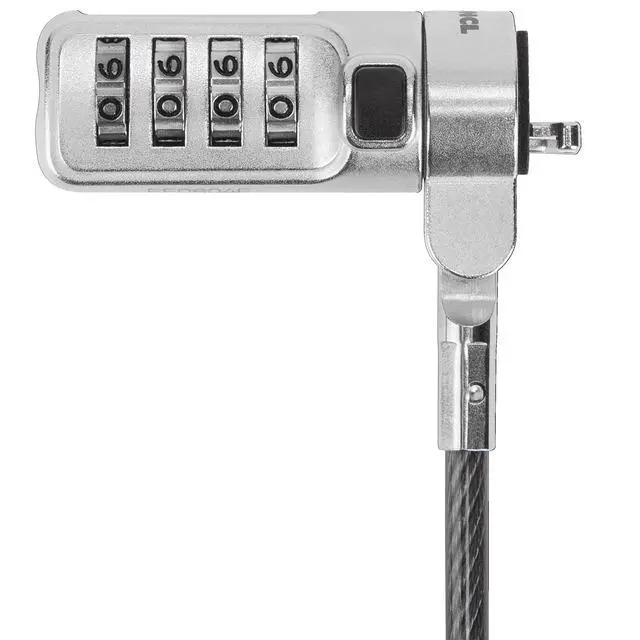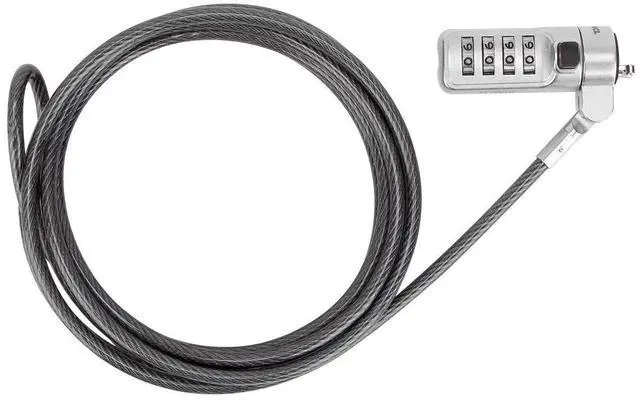 The DEFCON Serialized Mini Combo Cable Lock is a sturdy locking device with a pass-through loop on one end and a combination lock on the other. The 6.5 -foot durable galvanized steel from which the cable is constructed is both cut and rust resistant, so its nearly impossible to destruct. And if someone attempts to remove the lock, it will noticeably damage the computer, alerting you to potential theft and preventing resale. Each lock is assigned a unique combination and serial number. The small form factor is easy to travel with and keeps out of the way while in use.