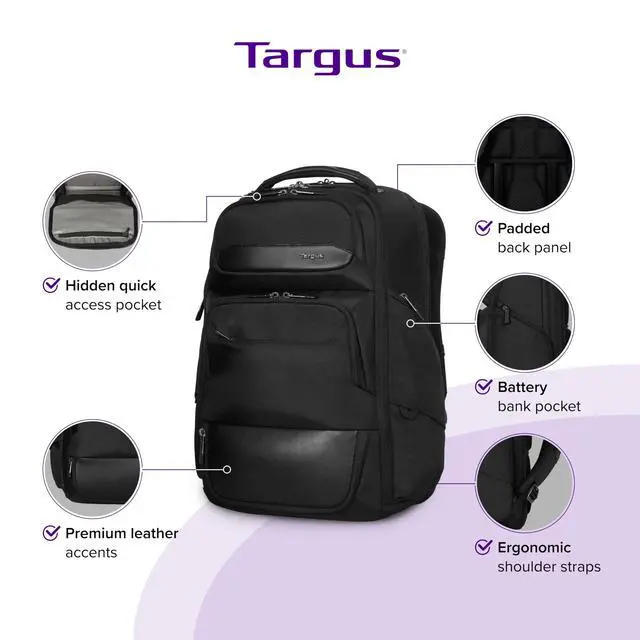 DescriptionThe Targus 15-16 Inch Heritage Luxe Backpack (TBB656GL) blends classic design with modern practicality, making it the perfect backpack for professionals, students, and travelers. Featuring a dedicated padded laptop compartment, this backpack securely fits laptops up to 16 inches, ensuring protection from minor impacts, scratches, and everyday wear. Designed with ample storage space, the backpack includes a large main compartment, a dedicated file organizer, and multiple accessory pockets, making it easy to store and access your tech gear, office supplies, and personal essentials. For all-day comfort, this backpack is equipped with padded, adjustable shoulder straps and a breathable back panel, providing ergonomic support and reducing strain during long commutes or extended travel.