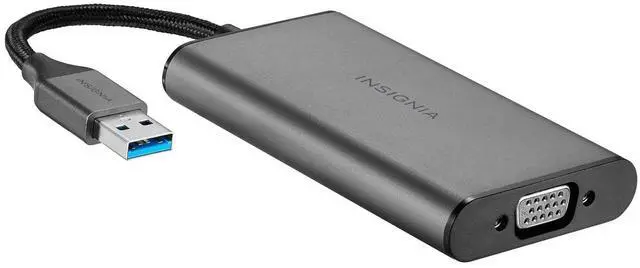 If you want to mirror or extend your display to a second screen, you'll need the right Insignia adapter cable. This one connects USB-A-enabled devices, like Windows or Mac computers or laptops, to monitors or televisions with VGA connectors. It offers a reliable 60hz signal performance for resolutions of up to 2048 x 1152.