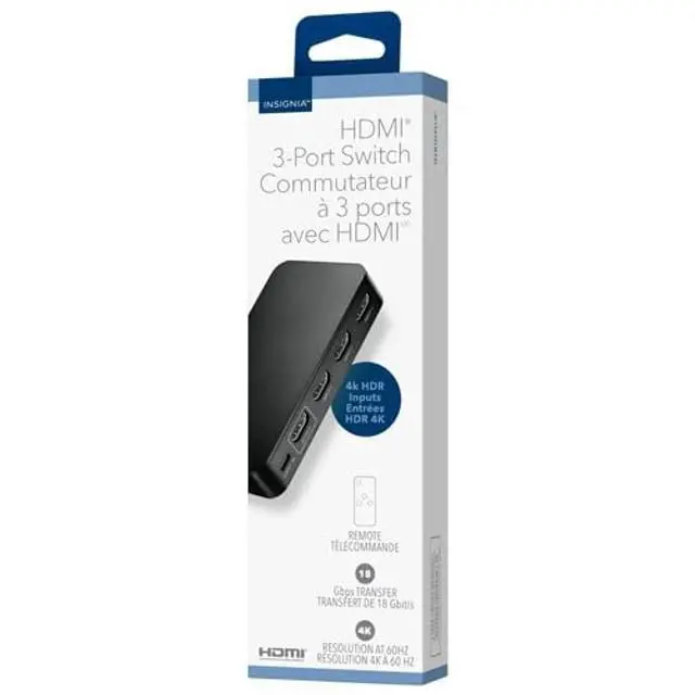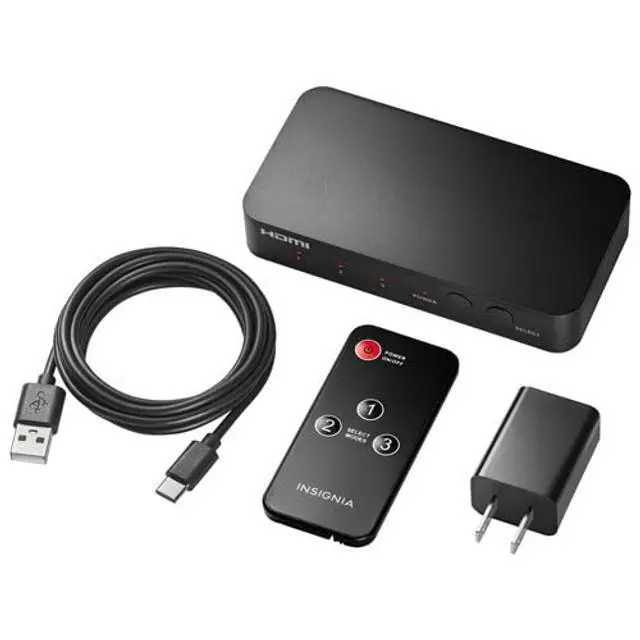 INSIGNIA TV, Monitor & Display Adapters 4K Ultra HD, 60W Power Delivery, USB 3.0 5Gbps Compatible with MacBook, iPad, Chromebook, Windows Laptops (3-Port HDMI Switch)