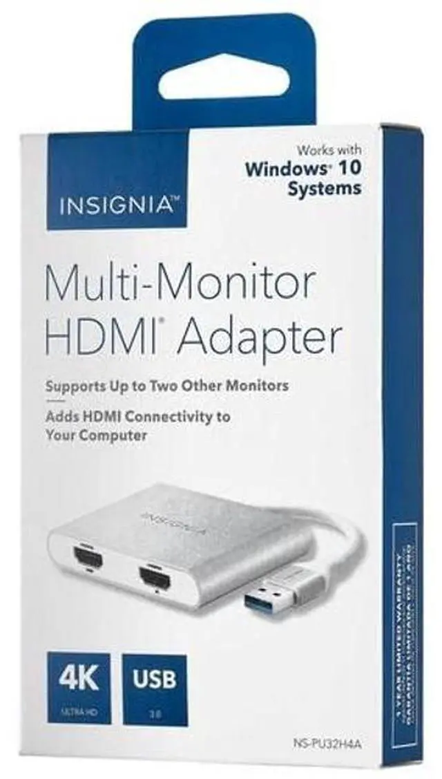Get a reliable multi-monitor setup with the help of the Insignia USB 3.0 to dual HDMI with 4K adapter. This compact adapter enables simultaneous output for up to two display units for enhanced productivity on a wide screen real estate. With support for up to 4K resolution at 30Hz, you'll experience the content of your choice in amazing detail.