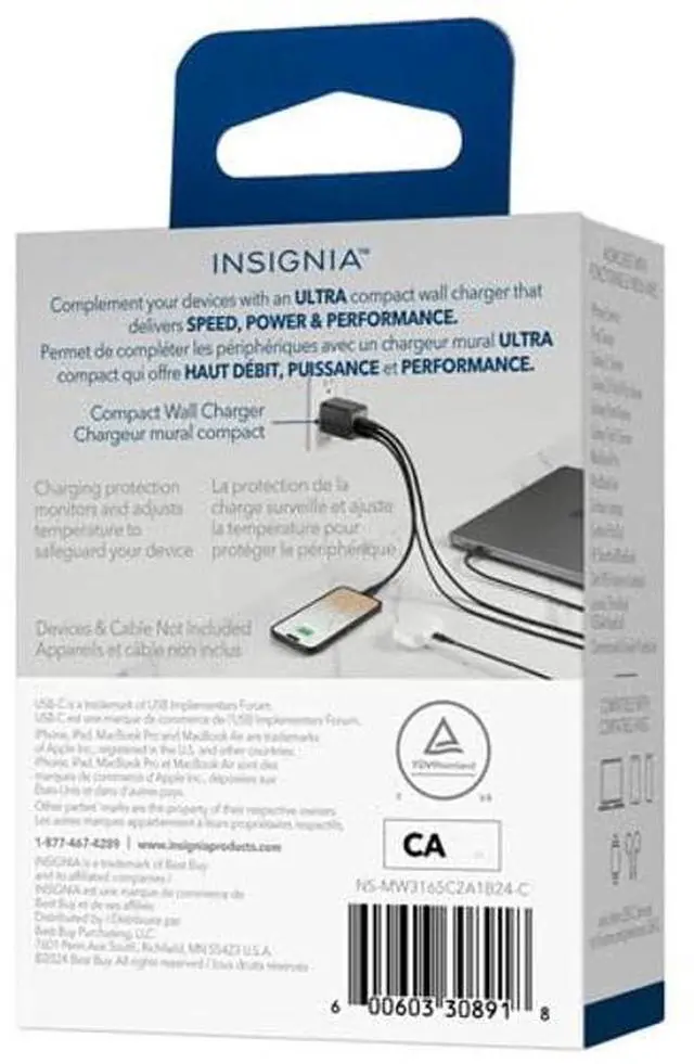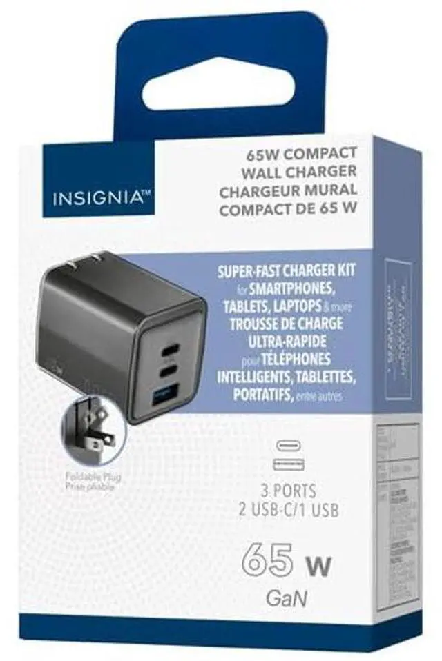 INSIGNIA USB Cables, 20Gbps High-Speed Charging & Data Sync, Braided Nylon, Compatible with MacBook, Laptop, iPhone, iPad, Android (Accessories, 65W 3-Ports USB-C Wall Accessory (BLK))